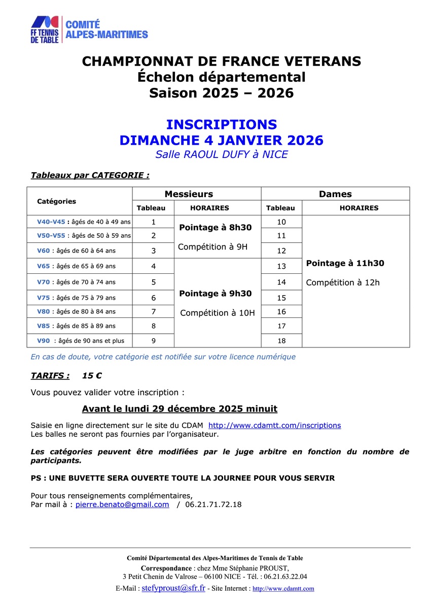 Saisie en ligne directement sur le site du CDAM Les balles ne seront pas fournies par l’organisateur.