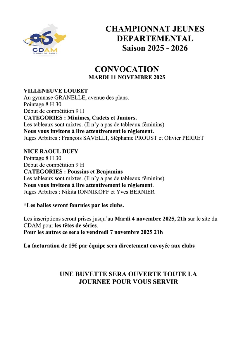 Les inscriptions seront prises jusqu’au Mardi 4 novembre 2025, 21h sur le site du CDAM pour les têtes de séries.
