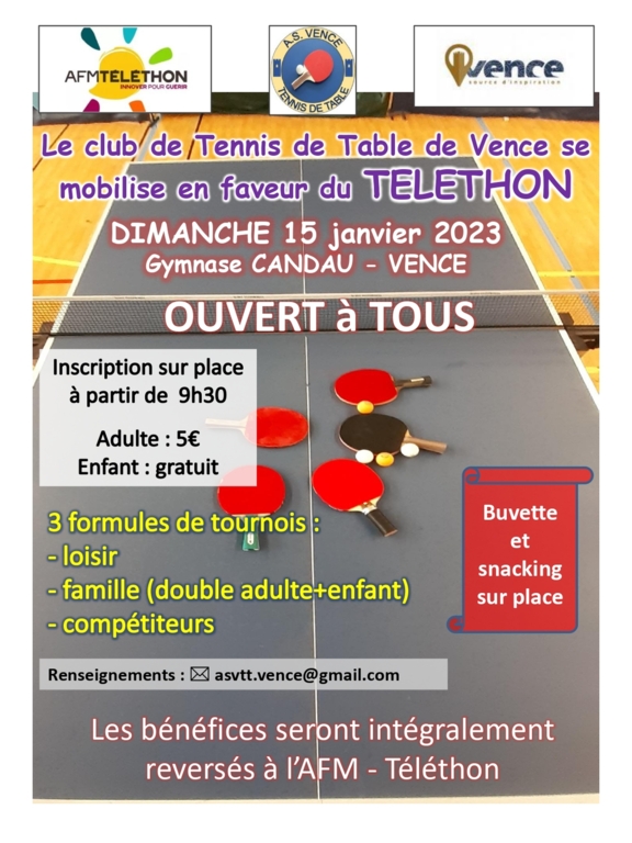 Le club de Tennis de Table de Vence se mobilise en faveur du TELETHON